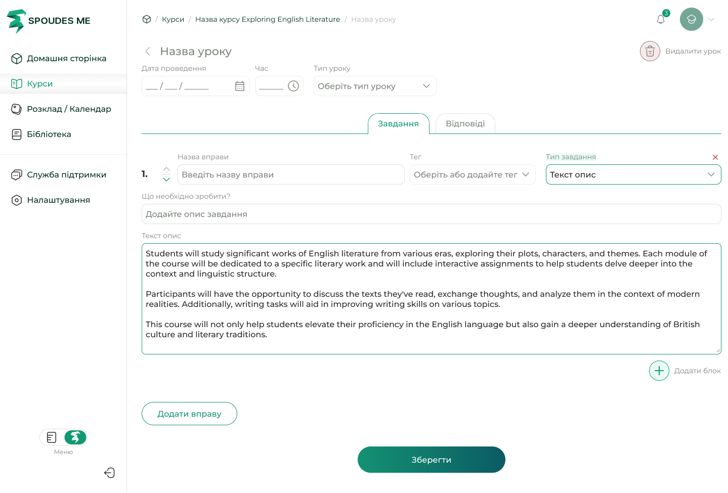 Create lessons for courses